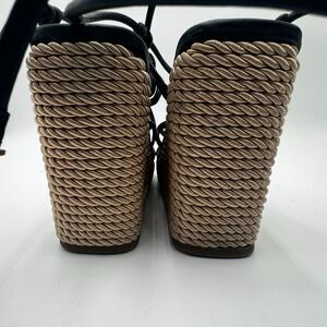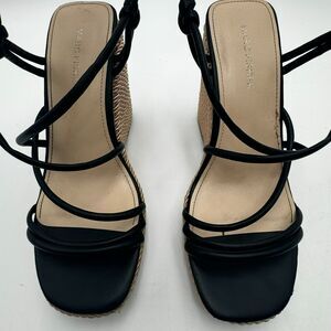 MARC FISHER | Women's 8 Strappy Black Boho Vegan Woven Wedge Zarah Sandals