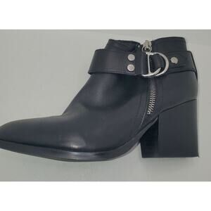 MARC FISHER Womens Black Leather Double Zip Buckle Harness Ankle Boots Size 7.5