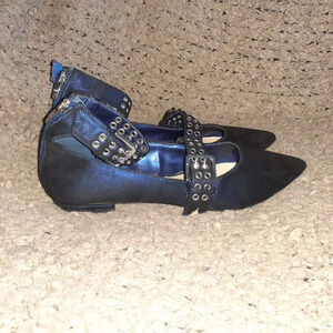 MARC FISHER-Alen-Two Strap Grommet Shimmery Blue Nubuck-Pointed Toe-Sz 8.5-NM