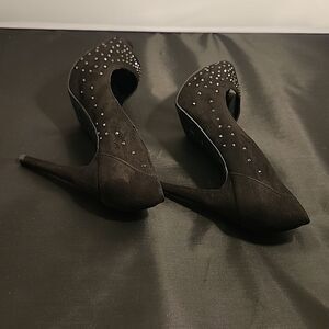 MARC FISHER JEWEL STUDDED EMBELLISHMENTS HIGH HEEL PEEP-TOE PUMP SIZE 9M COLOR BLACK FEATURES ALL MAN-MADE MATERIALS TEXTILE UPPER MAN-MADE MATERIALS HELL HEIGHT MEASUREMENTS APPROXIMATELY 5"INCHED THIS ITEMS IS PRE-OWNED EXCELLENT CONDITION WITH ONLY LIGHT SIGNS OF WEAR IF ANY CHECK THE PICTURES