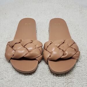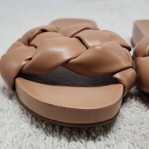 HELLO ,THESE MARC FISHER STYLE MIMENTA 2 IN COLORWAY NATURAL TAN LEATHER. THEY ARE A WOMAN'S SIZE 6.0M THEY HAVE QUILTED CRISS CROSS PILLOW ON THE VAMPS. THEY ARE LEATHER ,WITH RUBBER SOLES FOR A GOOD GRIP. THE SLIDES ARE SO COMFORTABLE THEY ARE 🔥 HOT.