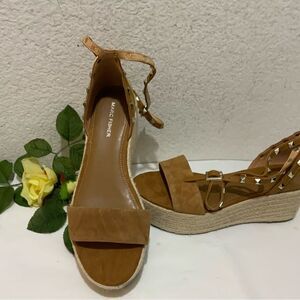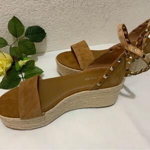 MARC Fisher Jazlyn Studded Ankle Leather Strap Espadrille Wedge Sandals Size 9