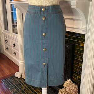 MARC JACBOS 100% Cotton Pin Stripe along Denim Skirt Sz 2
