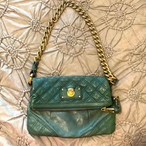 This is an authentic Marc Jacobs bag I purchased around 15 years ago that I LOVE! As you can see it’s been slightly used but it is great condition and a gorgeous green color! It’s a great day to night or night bag and is a very unique bag- every time I wear it I get a ton of compliments!