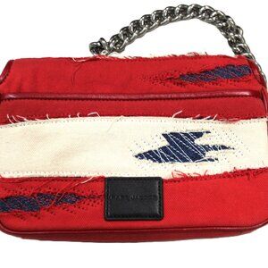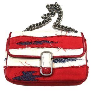Excellent / unused condition on this MARC JACOBS "Americana" / "Rip & Tear" convertible purse. The chunky silver chain can be used for a shoulder look or use the red leather strap for crossbody use. This is a brand new piece just taken out of the wrap for the photo. Dust bag, strap and card with UPC included. Retail $450.