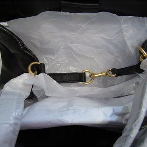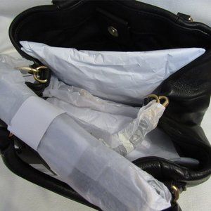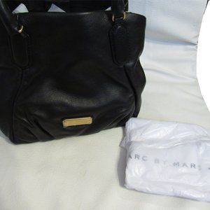 This is a brand new Marc by Marc Jacobs Q Fran handbag made of very soft Italian bovine black leather with two rolled leather handles and a detachable leather shoulder strap. It was purchased from Nordstroms back in 2016 and has never been used. It will ship as it was purchased from the store, with all stuffing still intact. It features goldtone hardware and a fully lined interior with two slip pockets on one side wall and zip pocket on the opposite wall; a hook clasp closure divides the two sides. It will ship with a sleeper/dust bag. Approximate dimensions are 17" x 6" x 10". This bag was put in storage shortly after purchase and has never been carried. Guaranteed authentic and new.
