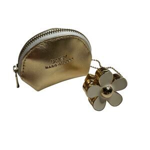 Daisy Marc Jacobs gold perfume ring. This is unused, but not sure how old it is. Includes gold zip case (there's some discoloration on the interior) and a cream gold floral ring with hard perfume on the inside. It slides open.