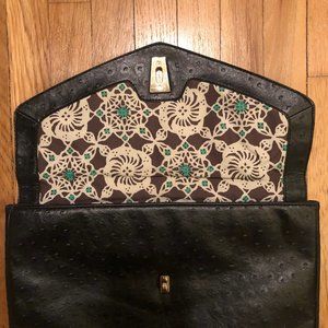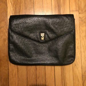 A luxe, ostrich-embossed faux-leather Marc by Marc Jacobs laptop case. Turn-lock clasp opens to a print-lined, padded interior. Imported. Perfect preloved condition.