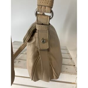 FLAP HAS A FUNCTIONAL ZIP COMPARTMENT (SOME SPOTS AROUND INTERIOR ZIPPER LINE.)