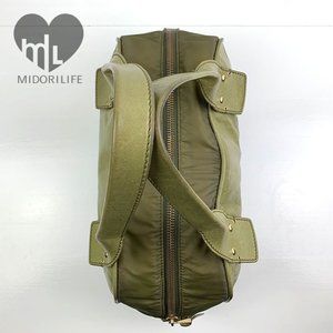 • Features: Leather and nylon exterior, top zip closure, studded/grommet detail, golden hardware, exterior zip pocket, interior slip pocket, riri zippers