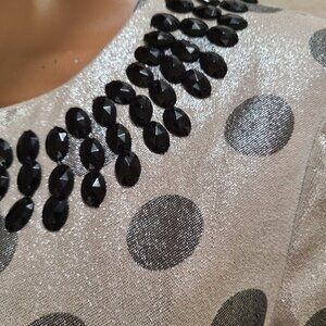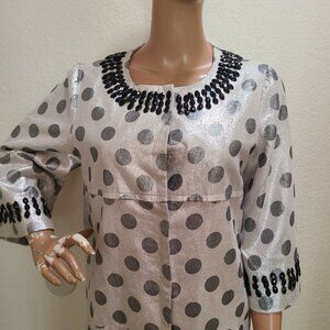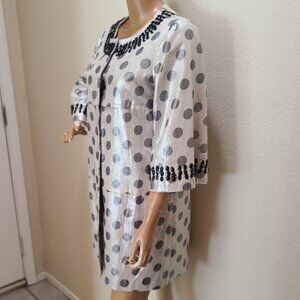 MARC JACOBS METALLIC POLKA DOT COAT DRESS JEWELED NECKLINE