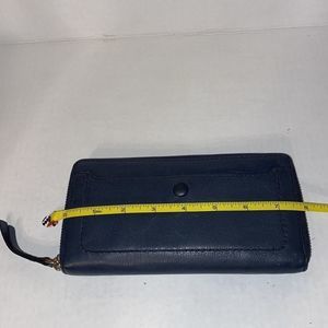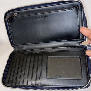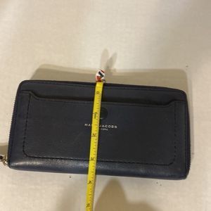 PREOWNED MARC JACOBS NAVY BLUE ZIP AROUND WALLET; HAS NORMAL WEAR SHOWN IN PICTURES NOTHING MAJOR