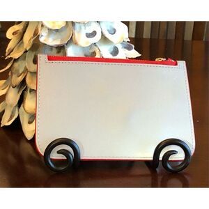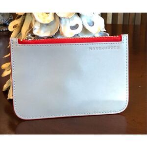 So adorable! ♥️ Marc Jacobs Card Case/Key Pouch in smooth silver leather with red trim. She's 6" x 4" with a zippered top entry. Silver-tone hardware with MJ logo pull on zipper and attached logo-engraved key ring that can be tucked inside the case. She has red interior and EdgKote trim around the case. With the red zipper, she's really unique and eye-catching. "Marc Jacobs" is embossed on the top right corner of this cute leather pouch. Great stocking stuffer or beautiful gift! And she's NWOT. Plastic is still attached to the key ring.