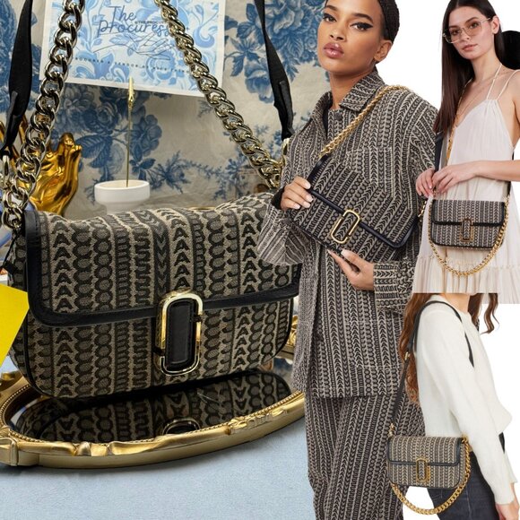 🆕 MARC JACOBS 🧿 NWT The Monogram J Marc Chain Satchel Shoulder Bag, Navy