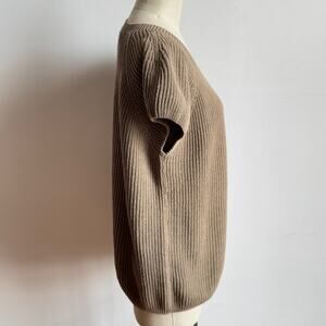 Details: MARC JACOBS olive ribbed knit raglan top with cap sleeves and a v-neck. Cotton, medium weight, oversized.