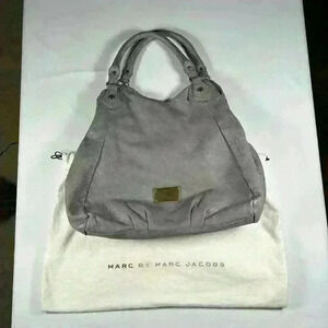 MARC JACOBS Y2K Gray Shoulder Crossbody Satchel Top Handle Leather Purse Women Large MARC by Marc Jacobs Classic Q Francesca Hobo Bag, Storm Cloud