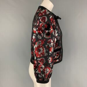 MARC JACOBS Size 2 Black Silver Burgundy Jacquard Jacket