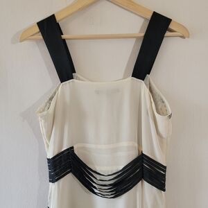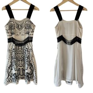 MARC JACOBS White Black Embroidered Silk A-Line Dress 4 Cocktail Formal Designer