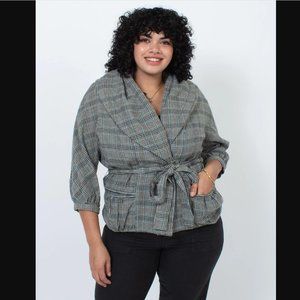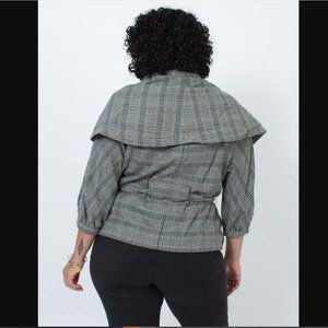 MARC JACOBS Women's Plaid Cowl Neck Jacket Size XS in Gray Multi