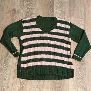 MARC JACOBS X HEAVEN Pink Green Stripe V Neck Sweater M