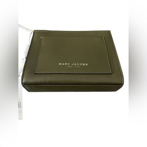 Beautiful olive green leather cosmetic case or pouch. Gold hardware, small pocket on the front, lined on the inside for easy cleaning. Perfect to keep your toiletries or use as small clutch out!