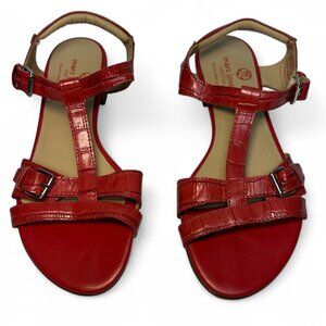 MARC JOSEPH Women's Terrace Round Toe Flat Sandals - Red Croc, Size US 7