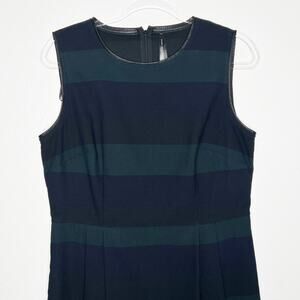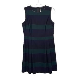 MARC NEW YORK ANDREW MARC Striped Pleated Knee Length Dress Green Navy Size 12