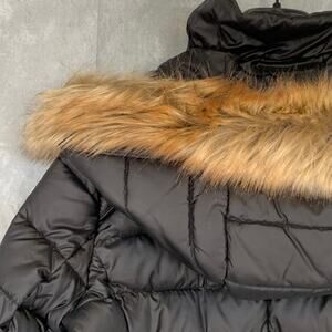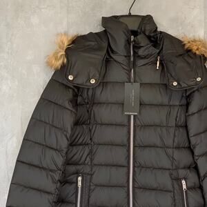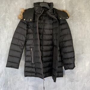 MARC NEW YORK Black Eleanor Mock Neck Full-Zip Faux-Fur Hooded Quilted Jacket SZ XS