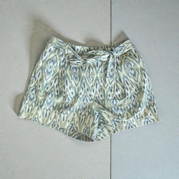 MARC NEW YORK Blue Green Ikat High Waist Belt Shorts Size Large NEW NWT