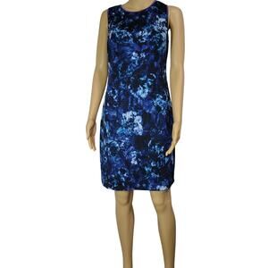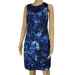 MARC NEW YORK Blue Purple Abstract Bodycon Sleeveless Midi Shift Dress Size 6