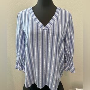 Marc New York Blue Striped Cotton Everyday V-Neck 3/4 Sleeve Blouse!
