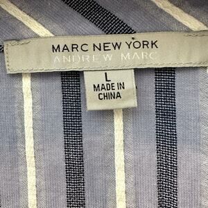 MARC NEW YORK | Blue Striped Cotton Everyday V-Neck 3/4 Sleeve Blouse | Large