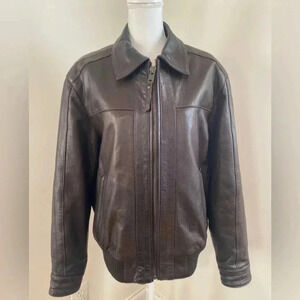 MARC NEW YORK Brown Leather Bomber Jacket Size Large