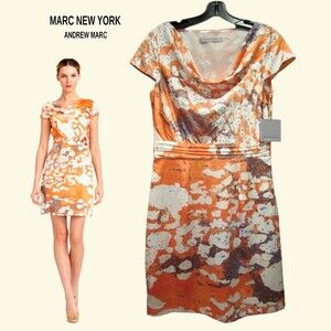 MARC NEW YORK ANDREW MARC |NEW| Abstract Watercolor Art Cowl Neck Pleated-Waistband Dress 8. Abstract-watercolor splash is on this dress with artful appeal. Allover abstract ink splatter with vibrant watercolor print that catches the eye on a spring sheath dress. A silhouette that accents your waistline and decorates your figure. You will love this dress! See pics for details and the measurements provided below to size this dress.