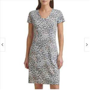 MARC NEW YORK WOMEN'S SHORT SLEEVE V-NECK DRESS (SNOW LEOPARD X-LARGE)NWT