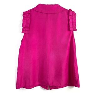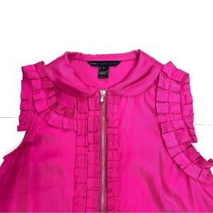 Marc by Marc Jacobs Silk Ruffle Cuffed Zip up Sleeveless Top in Fuchsia Pink