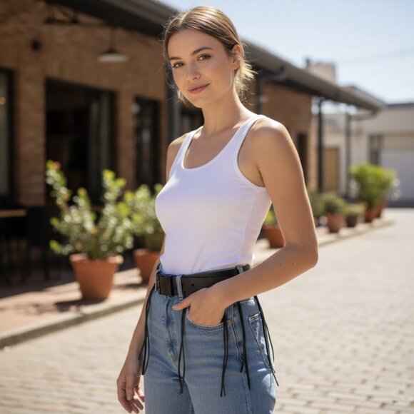 º Subtle, single-string leather fringe details for an understated, deconstructed vibe.