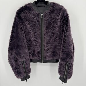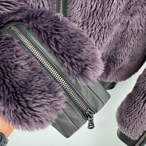 MARCELL VON BERLIN Purple Black Fur Lambskin Leather Teddy Full Zip Jacket Sz 6