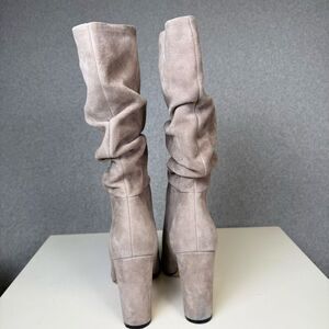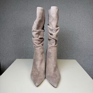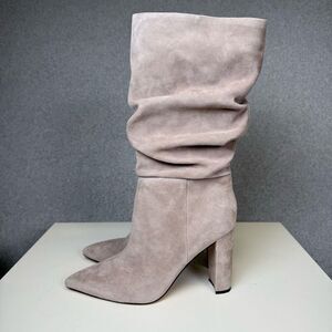 MARC FISHER Womens Beige Gomer Pointed Toe Block Heel Leather Slouch Boot 11M