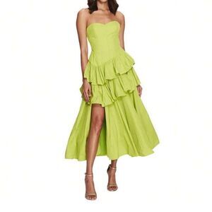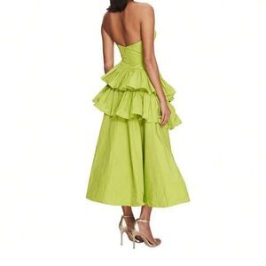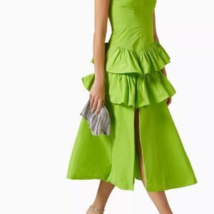 MARCHESA NOTTE Bright Green taffeta tiered midi dress Sz 4 NWT