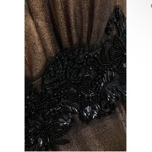 Gown This impeccably crafted design is best suited for black tie receptions and events Metallic Stretch-jersey Gathered Crystals Beads Mesh trims Concealed hook and zip fastening at back Stretchy fabric