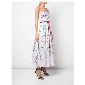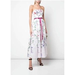 MARCHESA NOTTE Floral Blush Strapless Corset Mikado Pique Midi Tea Gown 6 = S