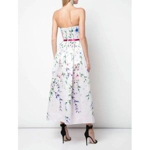 NEW MARCHESA NOTTE Floral Blush Strapless Corset Mikado Pique Midi Tea Gown
