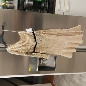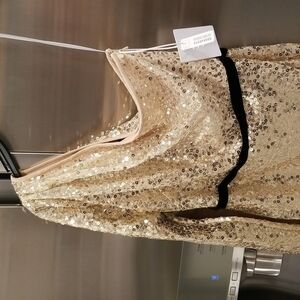 💕MARCHESA NOTTE💕 Glitter Ruffle Asymmetric Cocktail Dress ~ Champagne 4 NWT