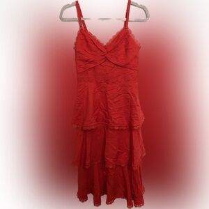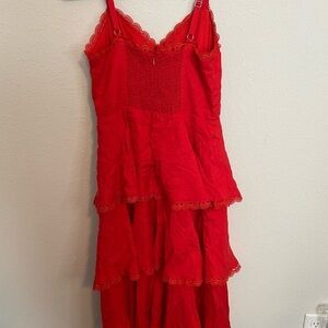 Flaw - this dress had a tear in the smoking that has been professionally repaired as well as a tear in the back as shown that has also been repaired. Not noticeable due to the layering effect. Last photo shows circled area where the tear was.