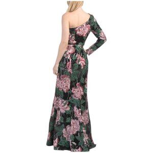 sequin embellished overlay, floral embroidered detail, fully lined, one long sleeve