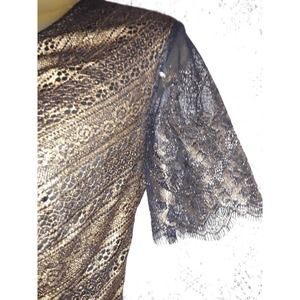 Marchesa Voyage Black & Gold Ruffled, Lacy Top in Black & Metallic Gold