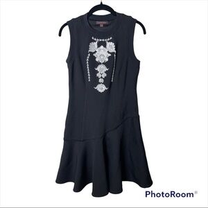 MARCHESA VOYAGE x REVOLVE Black White Embroidered Scuba Tank Mini Dress Size 2