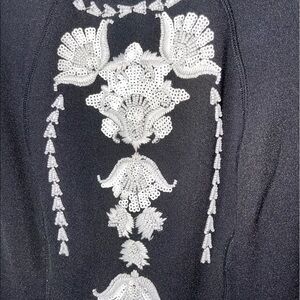 Self: 95% poly, 5% spandex.Lining: 100% poly. Dry clean only. Unlined. Rib knit edges. Bead and sequined embellishment. Revolve Style No. MRCH-WD3. Manufacturer Style No. P4710S.
