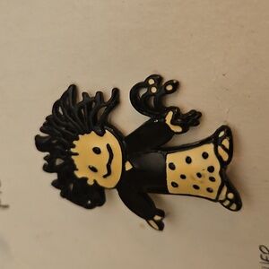 Charming black and white brooch with a mother figure design. Perfect for adding a personal touch to any outfit.